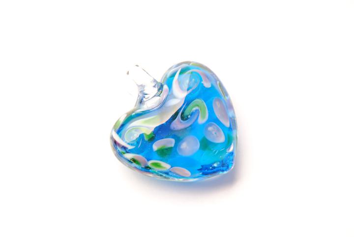 Schmuck Glasschmuck im Murano-Stil: Der Murano-Stil Schmuck Glasschmuck hat die Grundfarbe blau und ist in Form einem Herz nachempfunden.